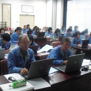 今年も全社員パソコンを使っての研修です。 今年はたくさんの社員が増えました。