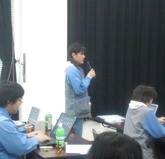 各委員会の事業計画の発表です。 感想を述べる新入社員さん。